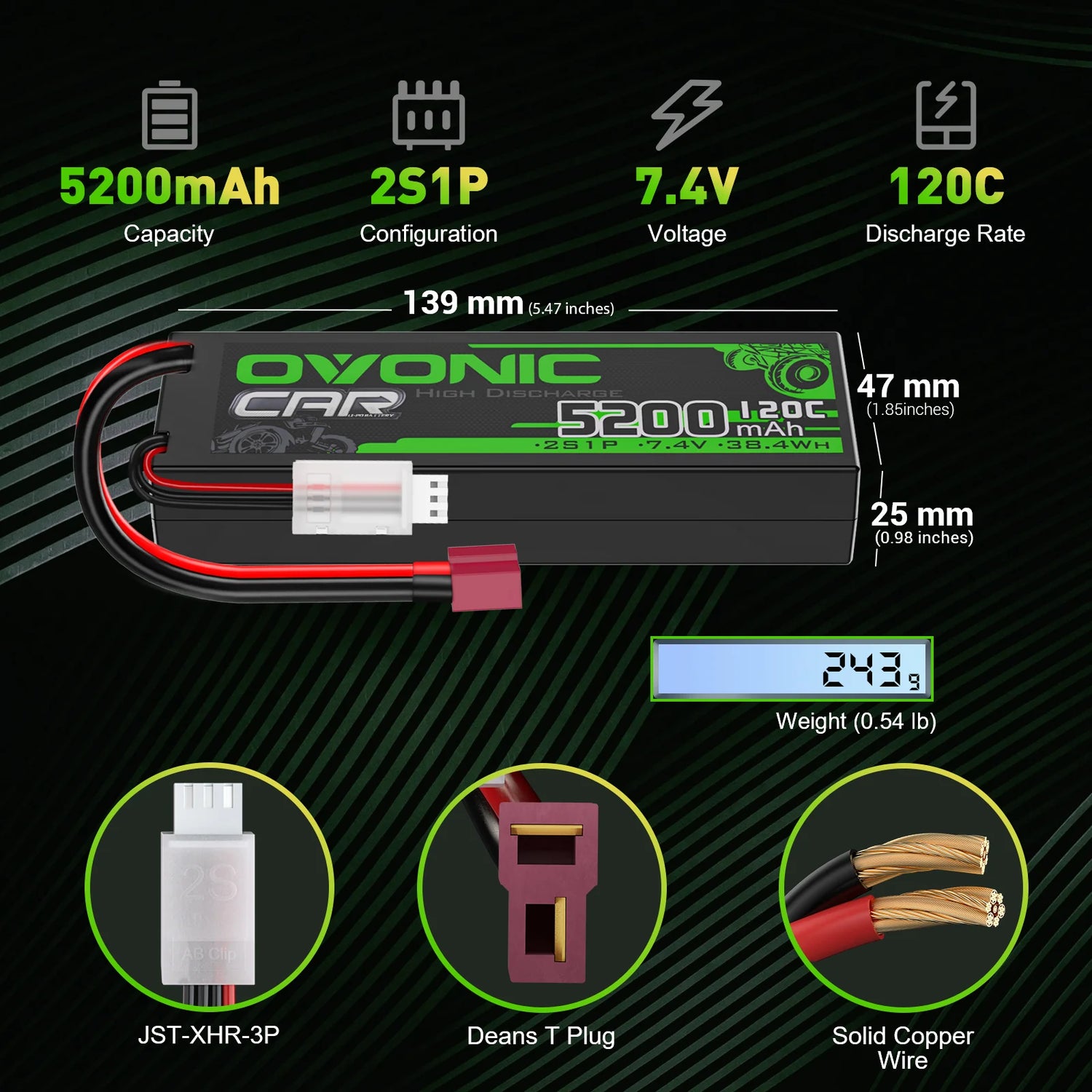 Ovonic Car 2S 120C 5200mAh 7,4V Hardcase RC LiPo-Akku mit Deans T-Stecker (2 St.)