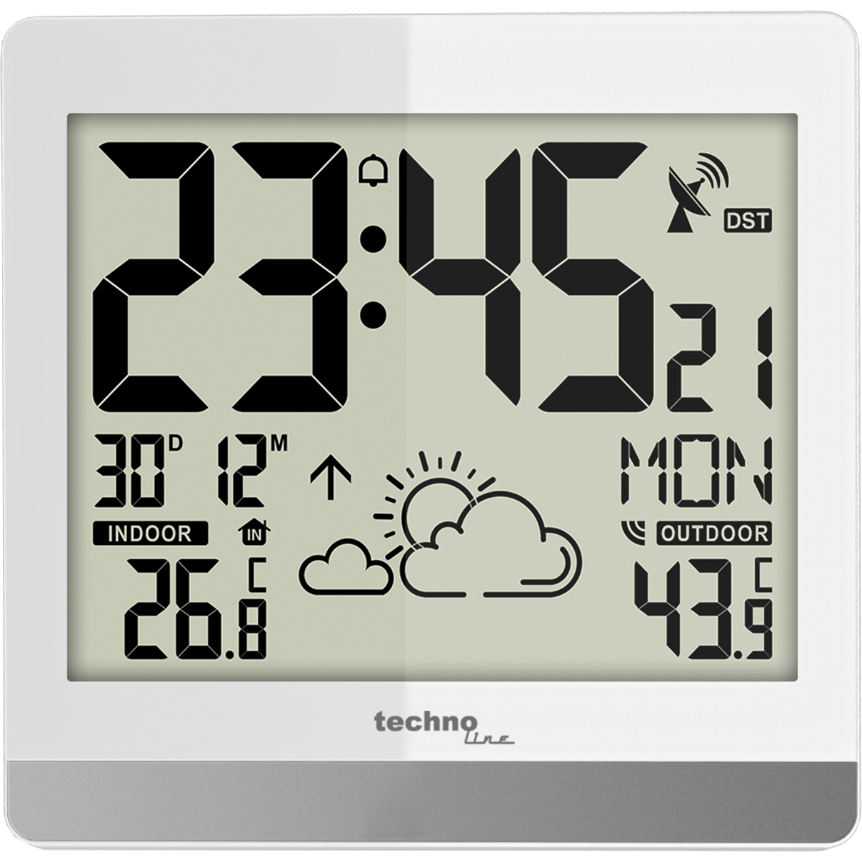 Funkwanduhr mit Innen- und Außentemperatur sowie Wettervorhersage