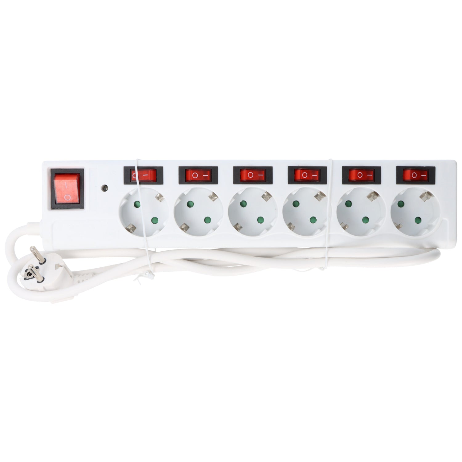 Steckdosenleiste 6-fach, Überspannungsschutz, einzeln schaltbar, Hauptschalter, 1,5 m Kabel, Innenbereich