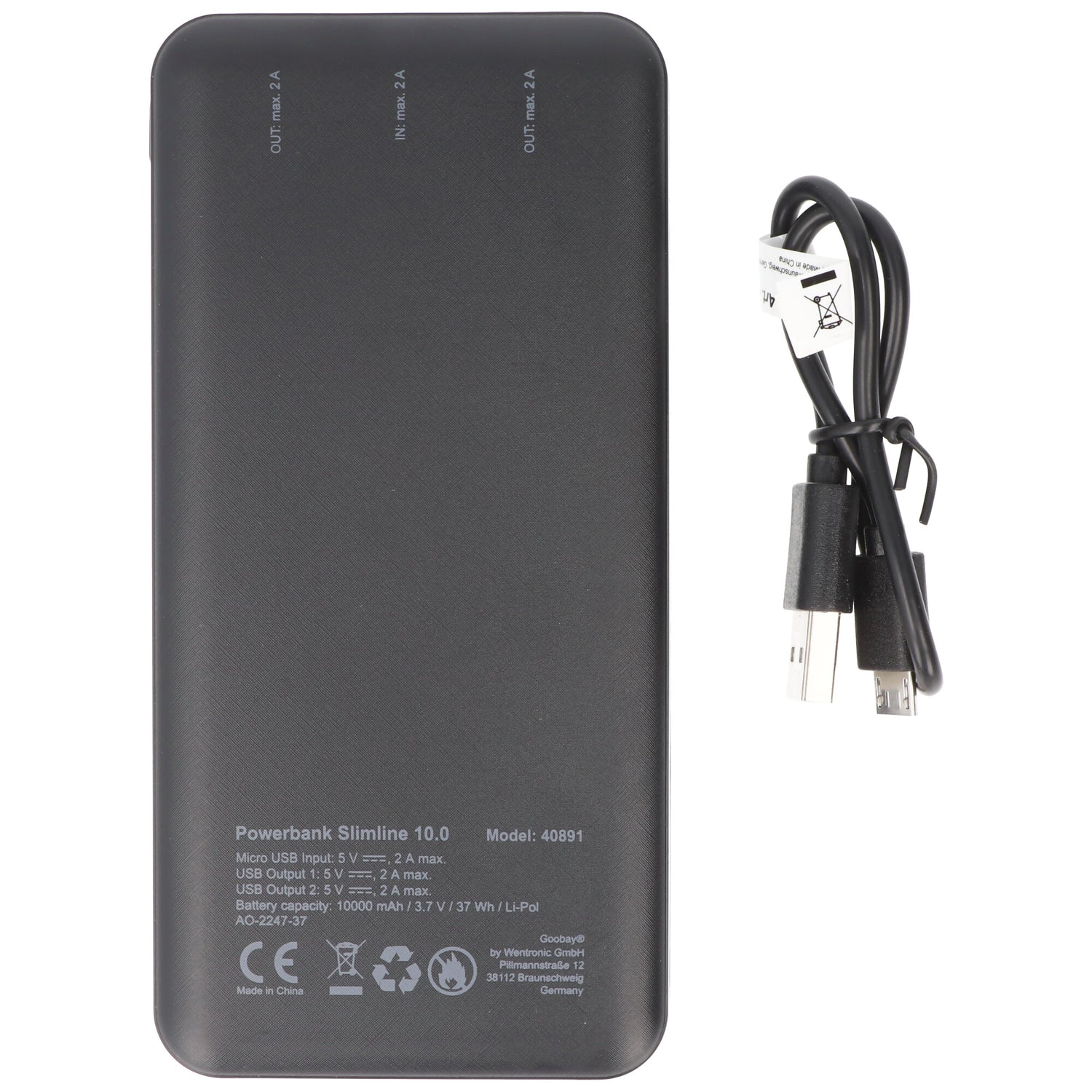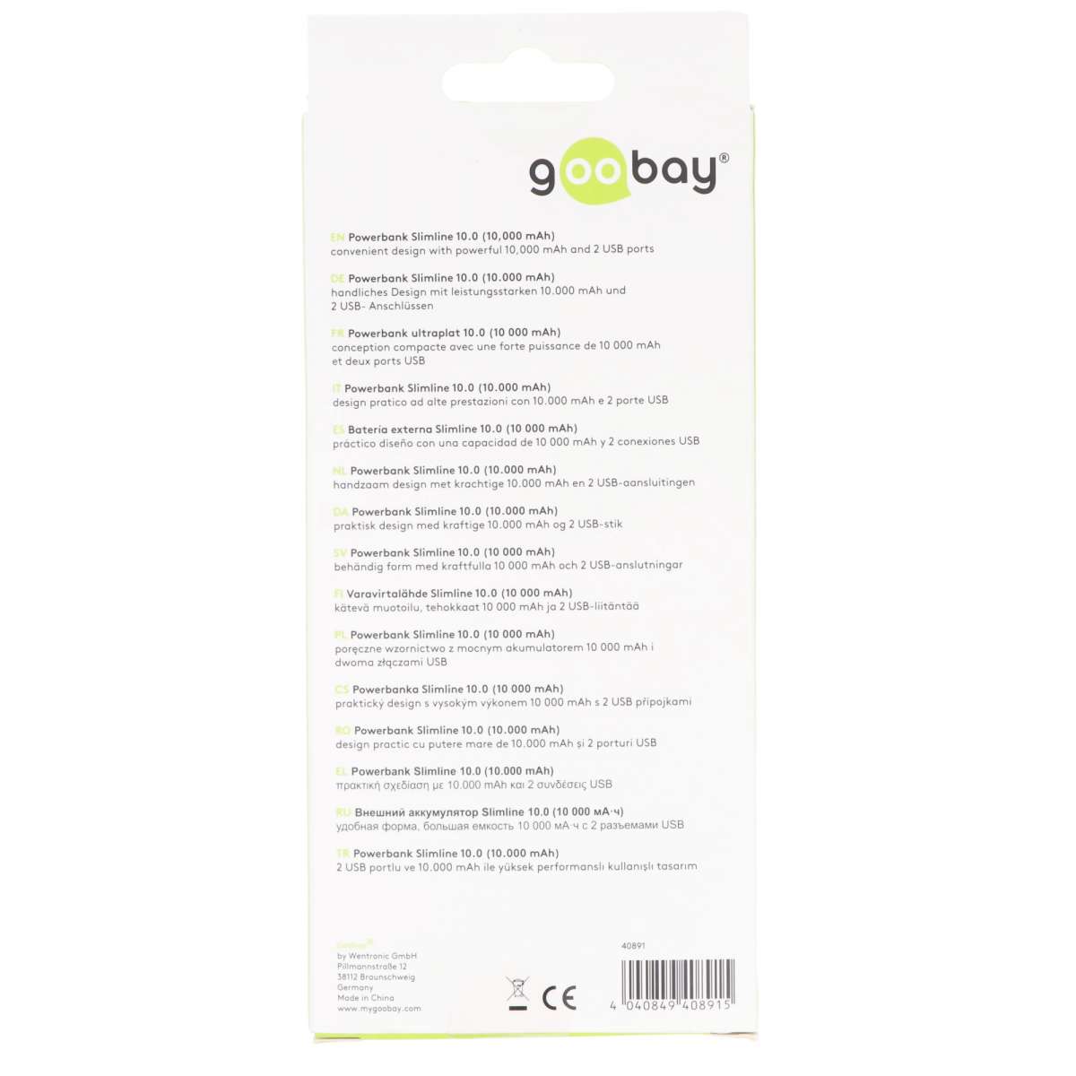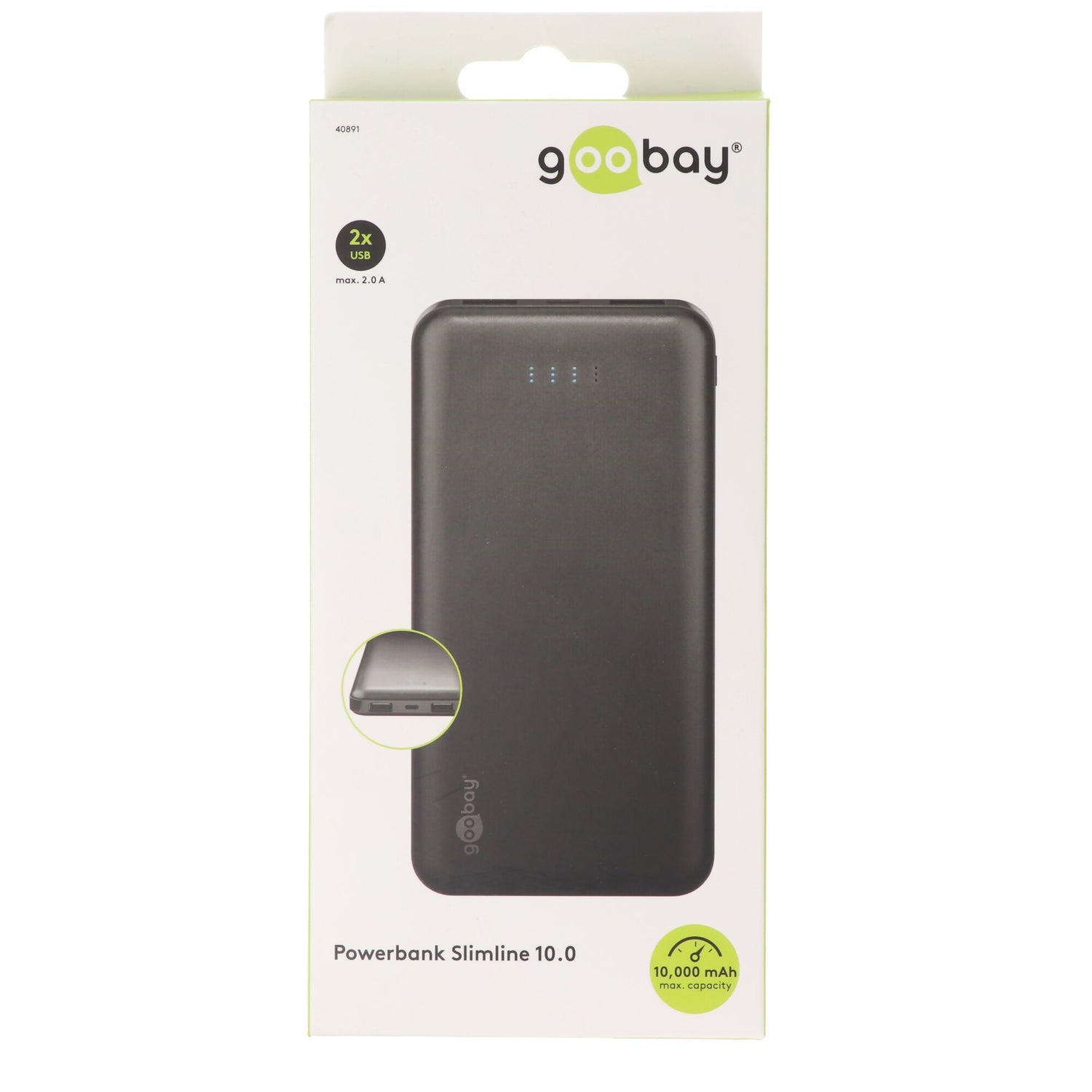 Goobay Powerbank Slimline 10.000mAh - Leistungsstarke 10.000mAh in einem handlichen wie griffigem Design mit Status-Display ist auf Lager und wird versandt, sobald es wieder verfügbar ist