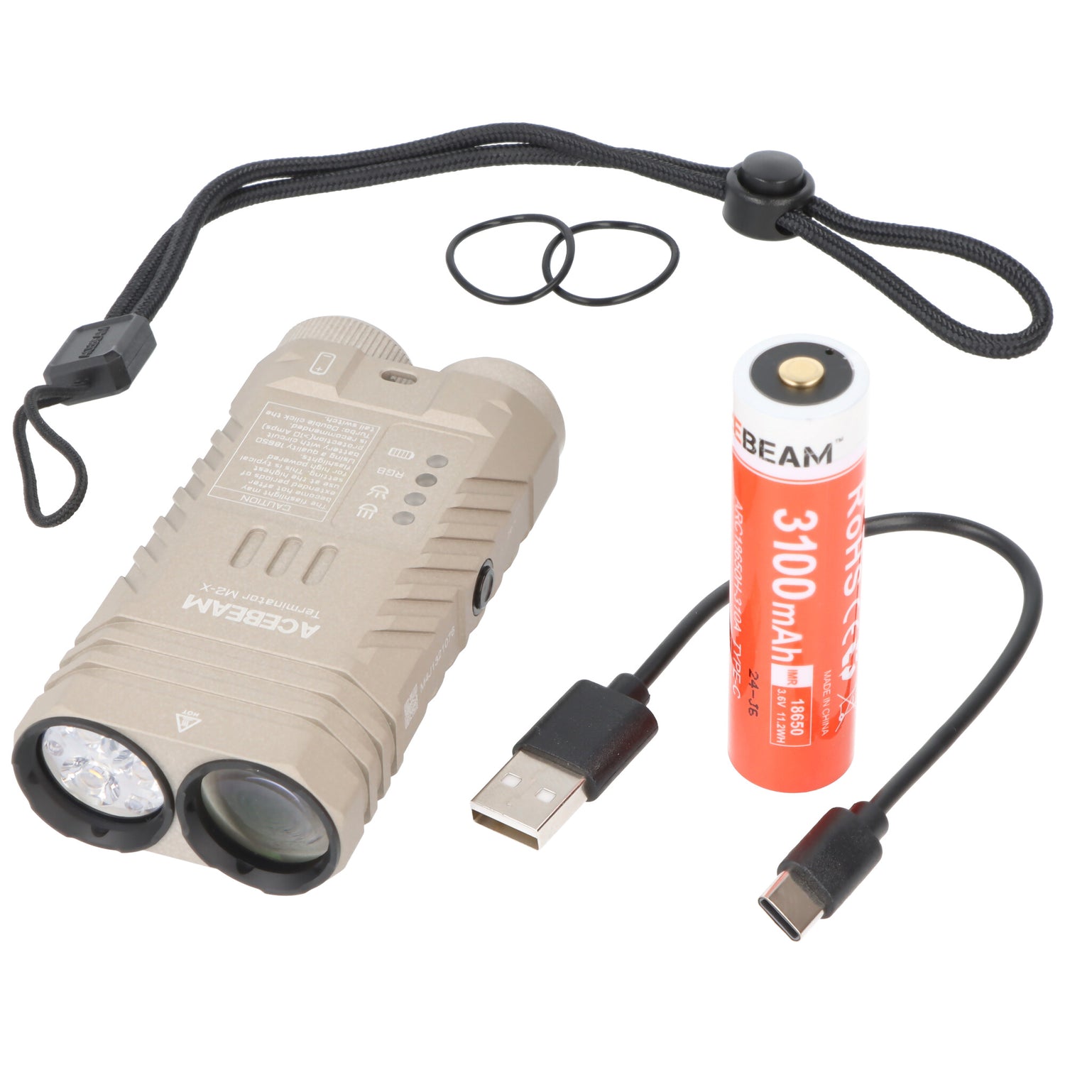 AceBeam Terminator M2-X – Dual LED Taschenlampe mit 6.500 K und bis zu 300 m Reichweite (Desert)