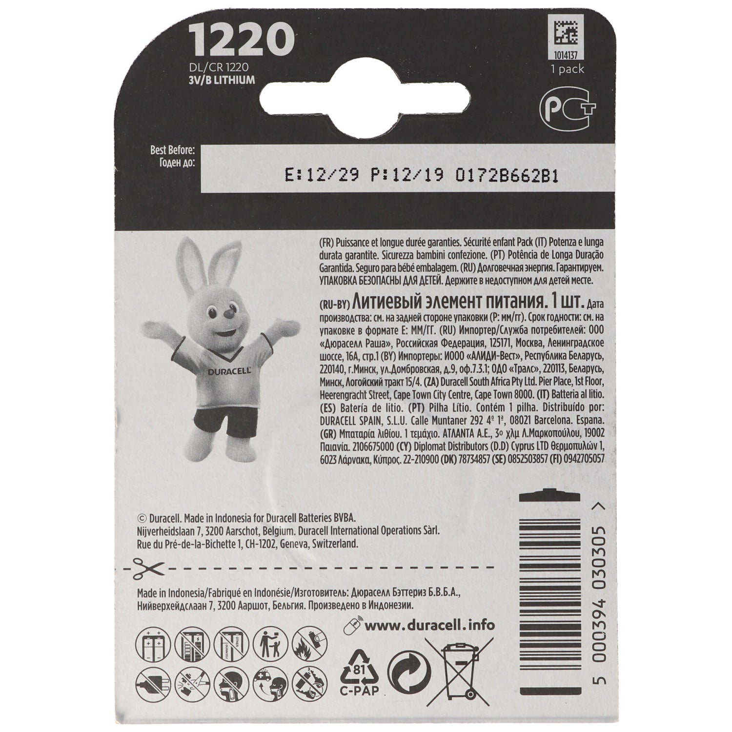 Duracell CR1220, Lithium-Knopfzelle, Einweg-Batterie, IEC CR1220, DL1220, lange Lagerfähigkeit