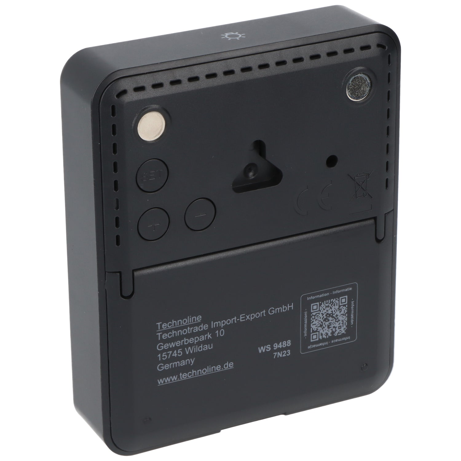 Die TechnoLine WS 9488 ist eine kompakte Thermo-Hygro-Station zur zuverlässigen Erfassung von Innen- und Außentemperatur sowie der Luftfeuchtigkeit im Innenraum. Sie richtet sich an Anwender, die im Alltag eine übersichtliche Kontrolle des Raumklimas und der Außentemperatur wünschen, ohne auf komplexe Zusatzfunktionen angewiesen zu sein. Das dezente schwarze Design fügt sich unauffällig in Wohn- und Arbeitsbereiche ein.
