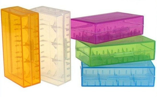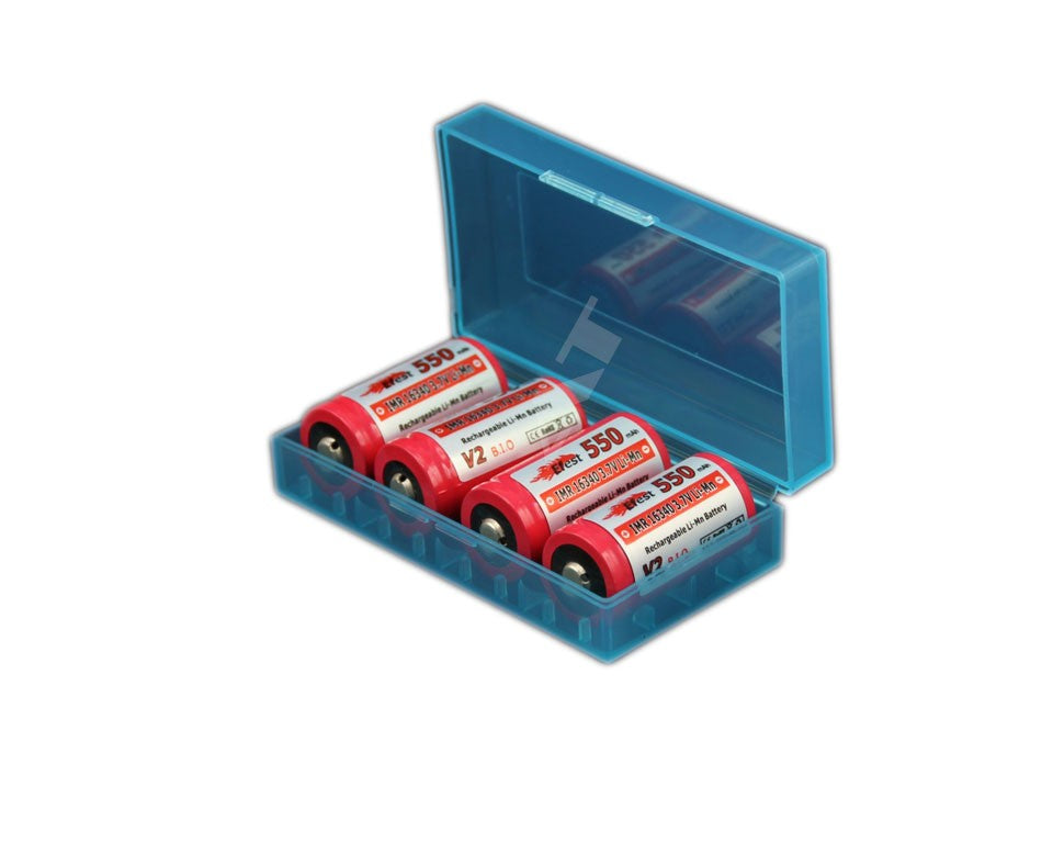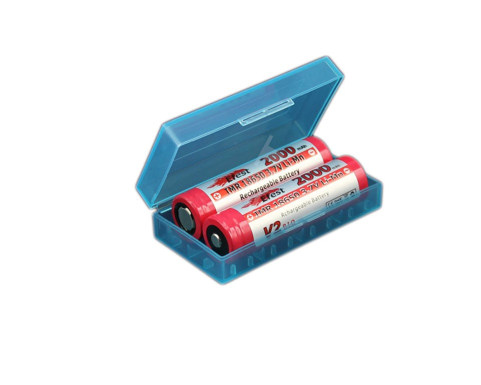 Eine Plastikbox zur sicheren Aufbewahrung von 2x 18650 Zellen oder 4x 16340 Zellen.