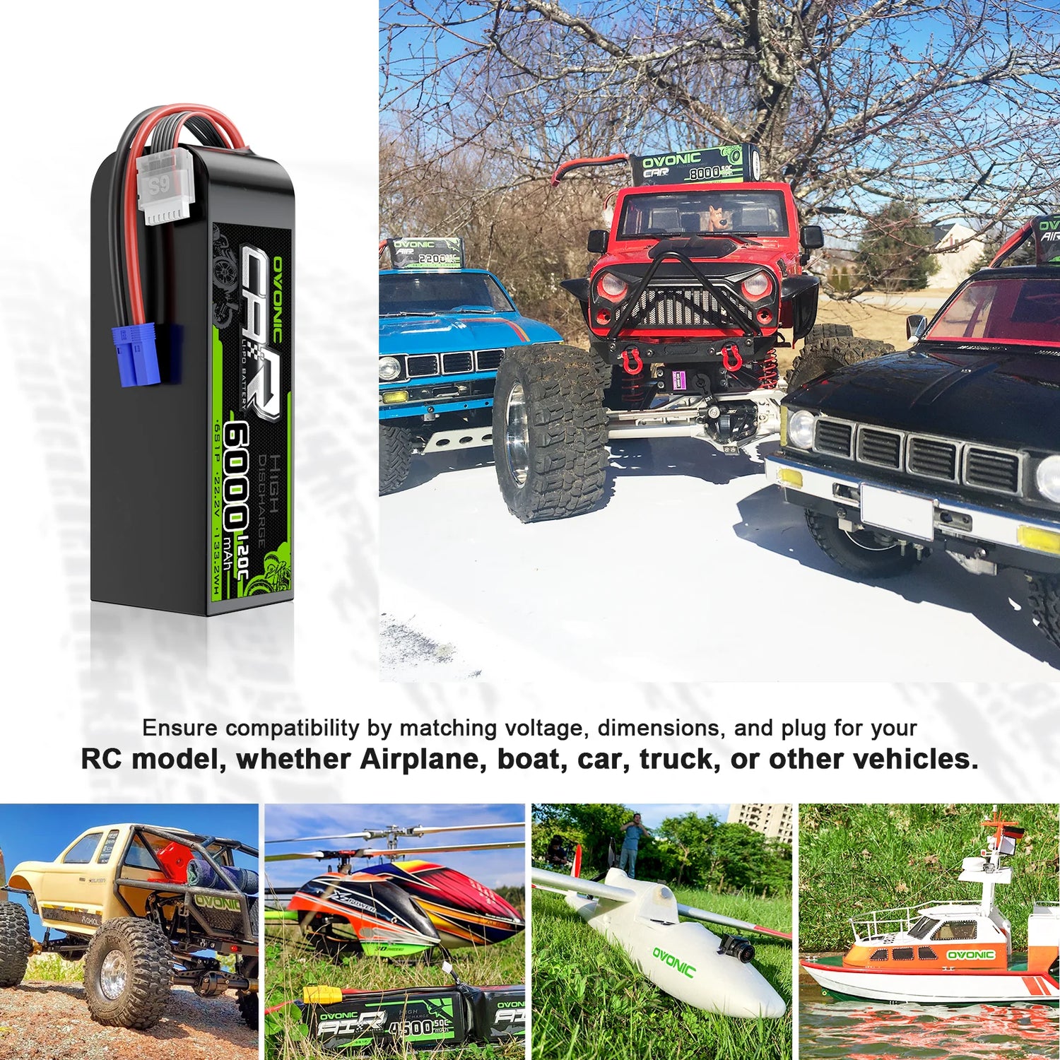 Der OVONIC 6S LiPo-Akku 6000 mAh 22,2 V 120 C RC-Akku mit EC5-Anschluss ist ein Hochleistungsakku, der für eine Vielzahl von RC-Modellen geeignet ist, die hohe Entladeraten und längere Laufzeiten erfordern. Hier sind einige RC-Modelle, die mit diesem Akku kompatibel sind: