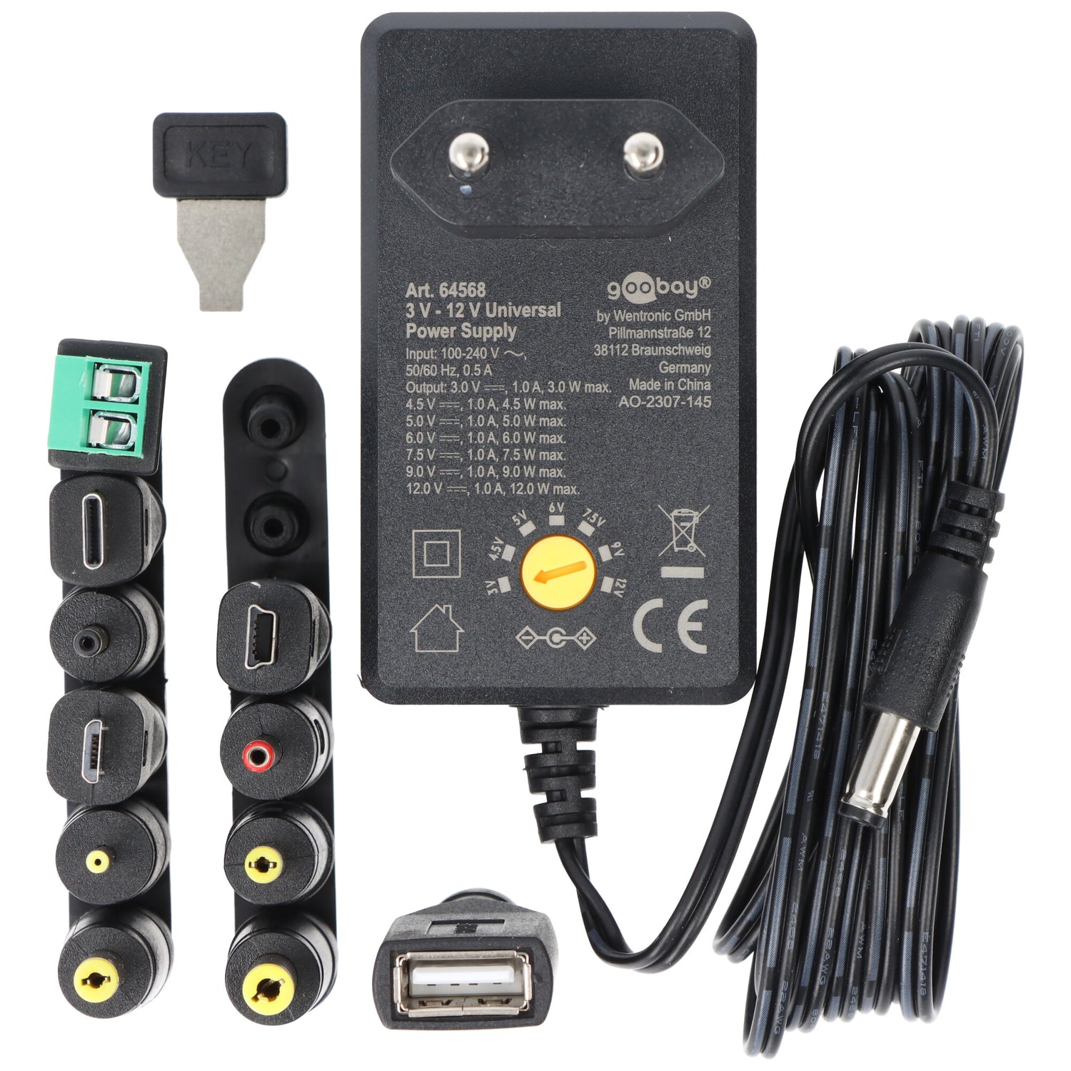 Goobay 3 V - 12 V Universal-Netzteil inkl. 6 DC-Adapter - max. 12 W und 1 A
