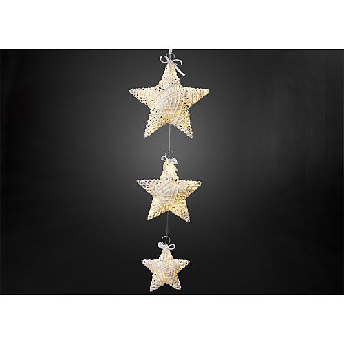 Hellum LED-Rattan-Hänger, 3 Rattan-Sterne, Batteriebetrieb, Timer-Funktion, 100 cm Stranglänge, 18 cm Abstand