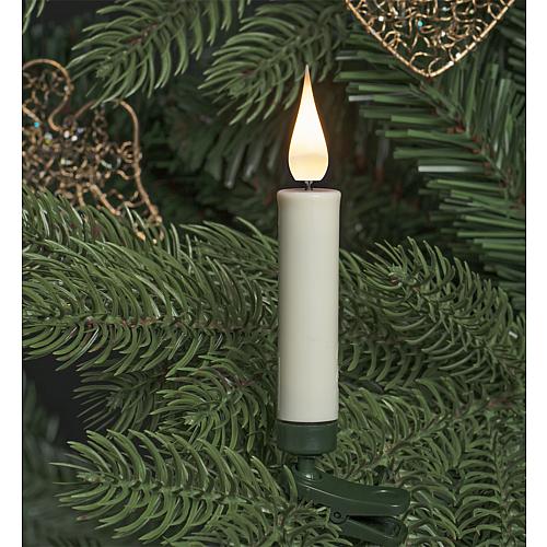 Jede Kerze wird mit einer Micro-Batterie (AAA) betrieben, während die Fernbedienung zwei Micro-Batterien benötigt. Dank des geringen Energieverbrauchs der LEDs ist eine lange Leuchtdauer gewährleistet. Das warme Licht und der authentische Kerzenschaft in Elfenbein verleihen jedem Baum ein klassisches und gemütliches Erscheinungsbild.