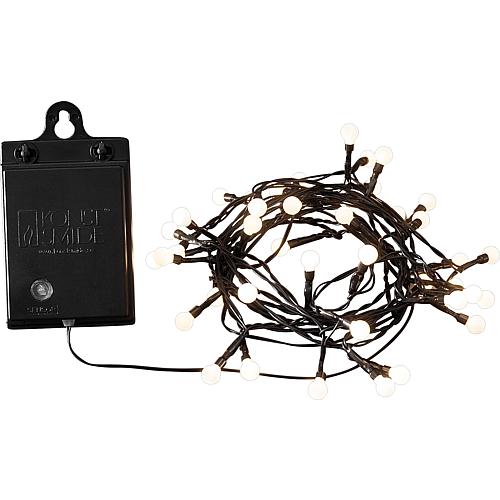LED-Globelichterkette, 40 warmweiße LEDs, Timer-Funktion, Dämmerungsautomatik, batteriebetrieben, IP44, schwarzes Kabel